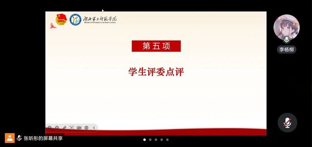 接着,学生评委对答辩队伍进行点评。其中,分团委学生副书记李杨柳提出以下几点建议:第一,以校级答辩要求按顺序展开展示,突出重点;第二,以表格内容展示重点数据,显现团队最大优势;第三,结合时政热点和队伍特色展开答辩,凝练语言、控制时间,在开头用简短的话语来概括答辩整体内容。