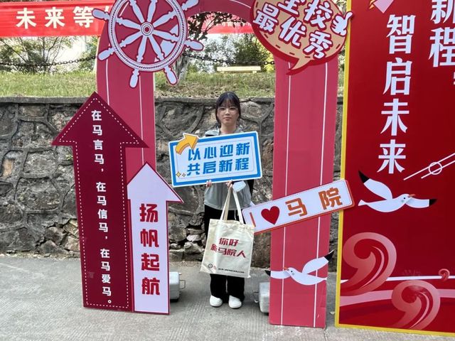 在马院的迎新现场,有一面独具特色的桁架,分为合影留念区,拍照区,以及签名区,包括特色kt板供新生合影留念。“思”梦启航,“政”启新程,寥寥数语传达出马院对新成员的美好祝愿。小萌新们纷纷来到桁架前合影留念,记录下这珍贵的一刻。这张合影,不仅是你们大学生活的开始,更是你们与马院结缘的见证。翻新一页,赴新一程。在这里,你们将开启一段充满挑战与机遇的大学时光,与老师、同学们一起,在知识的海洋中遨游,在思想的碰撞中成长。让我们一起在这面桁架前,留下青春的印记,凝聚起前行的力量。