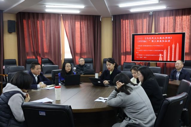 本网讯(通讯员肖潇)为贯彻落实习近平总书记关于新质生产力精神融入思政课教学的要求,2024年11月28日下午,湖北第二师范学院马克思主义学院“马克思主义基本原理”教研室在数字马院思政名师课堂研磨中心开展月度专题教研活动。马克思主义学院党总支书记金殿中、教学副院长刘雯、教学督导王顺双、教学办主任尚峰以及教研室全体教师参加了此次备课会,活动由教研室主任肖潇主持。