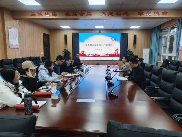 本网讯(通讯员何瑾)12月26日下午,马克思主义学院召开党总支理论学习中心组学习会,认真学习习近平总书记关于坚持好、发展好、完善好中国新型政党制度的重要论述;习近平总书记对新时代马克思主义理论研究和建设工程作出的重要指示精神;《中华人民共和国宪法》《湖北省平安建设条例》等。党总支书记金殿中主持,宣传委员何瑾领学,学院其他领导班子成员、总支委员、各支部书记及党政办公室、教学办公室、学生办公室主管参加学习。