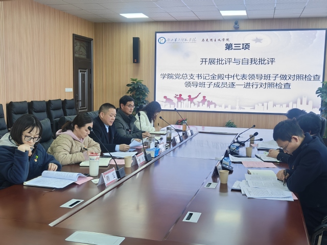 金殿中通报学院2023年度中层党员领导干部民主生活会整改措施落实情况和2024年度民主生活会前期准备工作情况。金殿中代表学院领导班子作对照检查发言,紧紧围绕学习贯彻习近平新时代中国特色社会主义思想主题,紧扣党纪学习教育目标任务,对照党的政治纪律、组织纪律、廉洁纪律、群众纪律、工作纪律、生活纪律的主旨要义和规定要求,深入检视剖析学习领会习近平总书记关于全面加强党的纪律建设的重要论述情况和学习贯彻《条例》情况并认真查摆突出问题,提出整改措施和今后的努力方向。随后,党总支班子成员逐一进行对照检查与自我批评,其他成员也依次开展批评帮助。