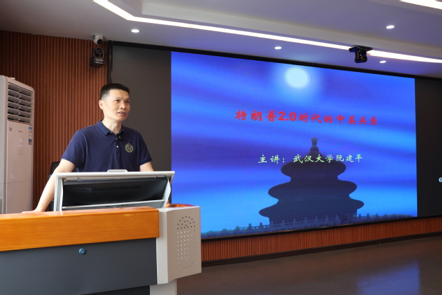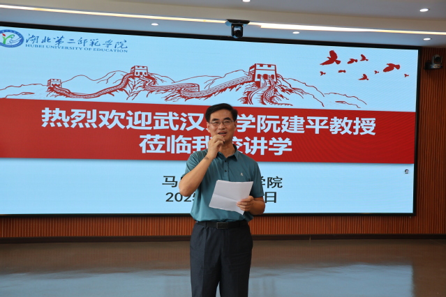 本网讯(通讯员韩彭瑞琦 王宣崇)6月18日,武汉大学政治与公共管理学院博士生导师阮建平教授应邀来湖北第二师范学院马克思主义学院数字马院,作题为“特朗普2.0时代的变与不变”的学术报告。学院院长黄红发教授主持活动,副院长刘雯、部分教师及思想政治教育专业学生参加。