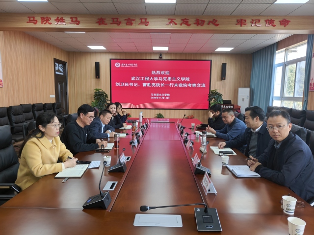本网讯(通讯员尚雪娜)11月14日上午,武汉工程大学马克思主义学院党总支书记刘卫民、院长曹胜亮一行来我院考察交流工作,学院全体班子成员参加了此次活动。