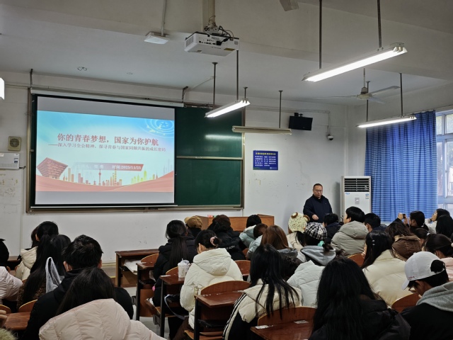 (本网讯 通讯员马小青)为深入学习贯彻党的二十届四中全会精神,引导青年学生将个人理想融入国家发展大局,11月25日上午,马克思主义学院在2214教室成功举办党的二十届四中全会精神宣讲活动。宣讲活动由校青年宣讲团樊勇老师、青年宣讲员张淦主讲,学院学生代表参与,以理论阐释与青春视角相结合的方式,让全会精神直达青年心中。