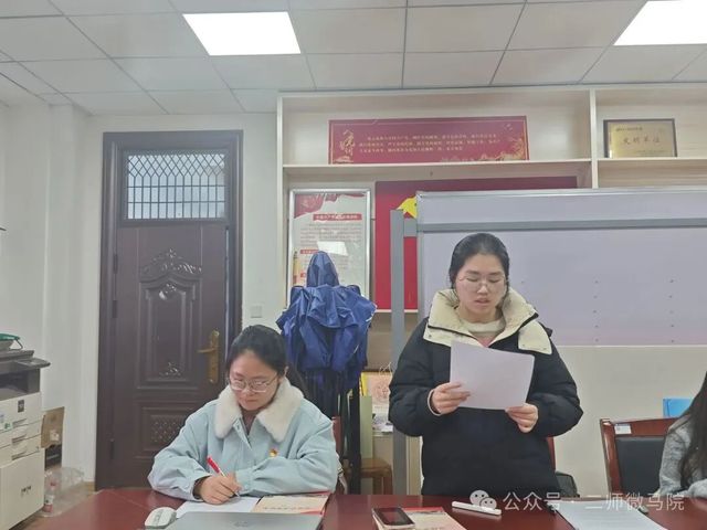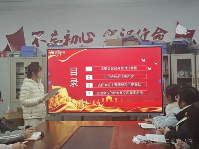 会议第十项,2023级思想政治教育2班柯梦贞进行微党课分享。微党课围绕古田会议,阐明了其主要精神及主要贡献,重点强调了古田会议的伟大意义和现实启示,为党员在新时代学习和弘扬革命精神提供思想支撑。