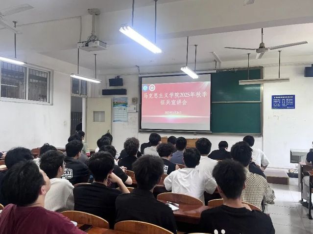 参军报国,笃学明志。为进一步推进征兵宣传工作,营造崇军尚武的浓厚氛围,在全院范围内激发参军入伍的积极性,引导同学们投身军营、奉献青春。5月26日,马克思主义学院组织于2号楼2214开展了秋季征兵宣讲会。