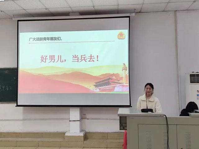 为积极响应国家号召,贯彻落实征兵宣传政策,激发青年学生的爱国情怀和参军热情。12月6日中午,马克思主义学院在旧报告厅3开展征兵宣讲会,马克思主义学院学工办主任樊勇以及全体学生参与会议。