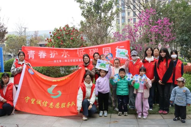 本网讯(通讯员朱梦琳)春光和煦,水泽万物。2026年3月22日,正值第三十四届“世界水日”,湖北第二师范学院“守望诚信”志愿服务队与乡村小学公益书院志愿服务队携手走进黄龙山社区,聚焦少年儿童群体,联合开展“水润童心,志愿同行”主题志愿服务活动。两队志愿者凝聚合力,以趣味手工与创意绘画为桥梁,将节水护水理念融入童真实践,用青春力量守护碧水清流,让节水意识在童心深处扎根生长。
