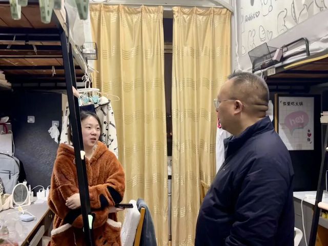 走访过程中,老师们细致查看宿舍卫生环境和用电规范,重点排查大功率违规电器、私拉乱接电线等问题,现场提出整改要求。