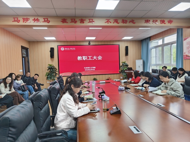 本网讯(通讯员何瑾)4月9日下午,马克思主义学院在会议室召开4月份教职工大会,会议由院长黄红发主持。