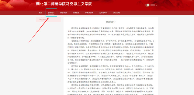 湖北第二师范学院数字马院,充分彰显了马院“网络思政”的优势特色。通过建设数字马院,把“互联网+思想政治教育”首批全国高校黄大年式教师团队、“互联网+思想政治理论课”高校省级教学团队、湖北省委宣传部“理论热点面对面”示范点、湖北省示范思想政治理论课基地、“互联网+高校思想政治理论教育研究中心”、“杨克思”一微一说等平台集成起来,形成马院教学、科研、人才培养、社会服务等多功能于一体的智慧化、数字化理论与实践教学发展中心,推进本科教学“双万工程”建设,发挥整体功能效应。