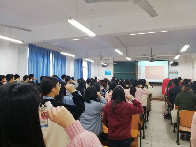 活动伊始,学生团员全体起立,胸戴团章,右手握拳,高昂宣誓“我志愿加入中国共青团,坚决拥护中国共产党的领导,为共产主义事业而奋斗。”接下来,在座学生高唱团歌。随后,2017级思想政治教育1班徐承启诵读团章:“中国共青团是中国共产党领导的先进青年组织,是广大青年在实践中学习中国特色社会主义和共产主义的学校,是中国共产党的助手和后备军。”最后,团员们注视大屏幕,集体观看影片《红海行动》,感受中国军人的无私无畏。