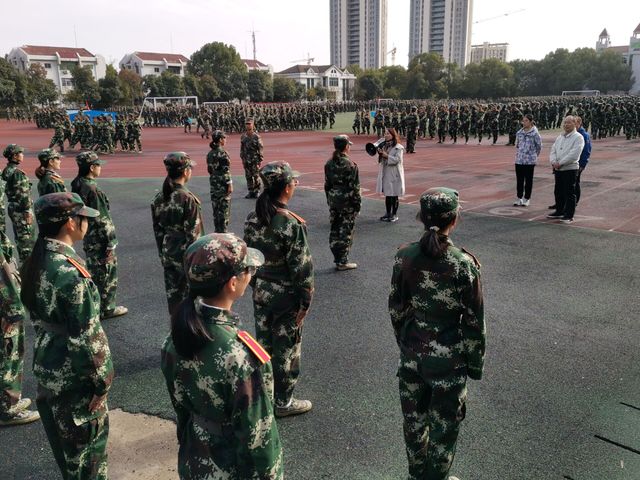 随后,尹书记拿起喇叭,对军训新生说道:“从你们军训开始,我就一直在关注你们的状态。军训期间没有一个人请假,你们每个人都坚持到了现在,真正做到了从心理上克服困难”。她指出,新生与军训之前相比变化很大,马院女子团很坚强。同时,她希望在场学生再接再厉,在军训汇演中展现马院学子风采,为马院争光。