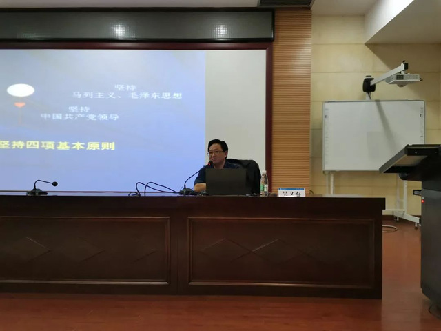 他首先向全体成员分享自己参加今年3月18日在北京召开的由习近平总书记主持的学校思想政治理论课教师座谈会的经历与心得感受。