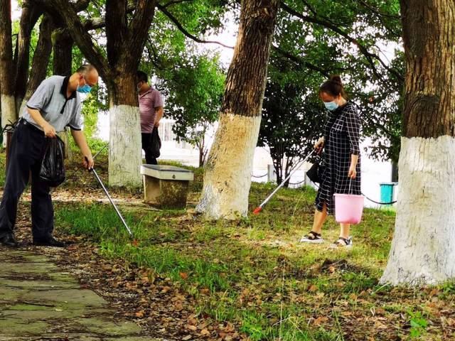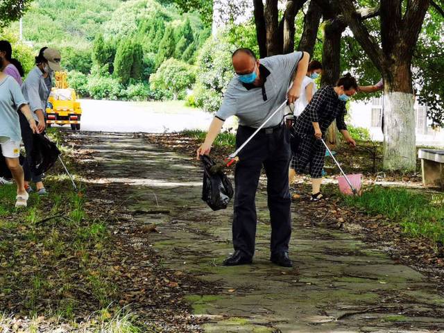 6月17日下午,马院全体返岗行政人员在副校长黄颂的带领下在包干区进行卫生清扫。三鉴池边路上的小纸屑被捏起、勤人坡小道上的枯树枝被移走、遗弃已久的竹扫帚被捡起……大家认认真真、一丝不苟,汗水早已打湿了口罩和衣服,想到同学们会在这里穿着学士服合影留念,再辛苦也值得!