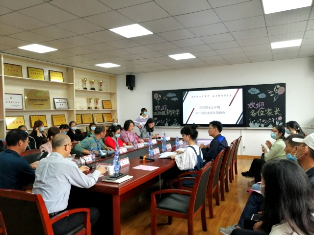 本网讯(通讯员 易娉羽)9月20日下午,马克思主义学院在二号教学楼二楼会议室召开2020级新生家长见面会。湖北第二师范学院党委常委、副校长黄颂,马克思主义学院领导和老师、马克思主义学院2020级新生及新生家长参与会议。会议由我院辅导员王一主持,并在网络平台同步直播,90余名新生家长与孩子共同参与。