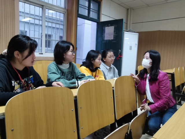会后,组织部领导老师与对接学生在现场进行一对一互动。