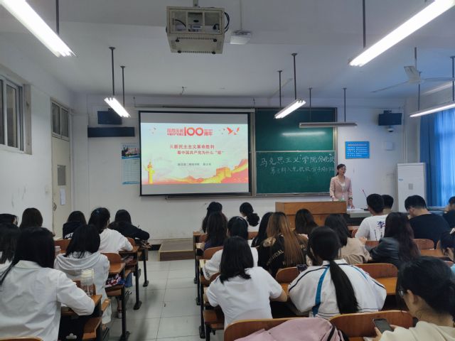 蔡志荣以《从新民主主义革命胜利看中国共产党为什么“能”》为题,从历史与人民是怎样选择了马克思主义、中国共产党的成立、中国共产党探索革命的新道路、怎样反对日本帝国主义侵略、怎样建立新中国五个方面展开。在讲述历史与人民是怎样选择马克思主义时,蔡志荣主要从马克思主义在中国的兴起以及广泛传播的过程展开讲述,表现出历史与人民选择马克思主义的必然性。随后,她结合历史实事多角度、多方面向同学们介绍中国共产党成立的背景和共产党人对中国革命新道路的伟大探索,并向在座学生介绍全国解放战争时期中国共产党的四个发展阶段。最后,她向学生展示习近平总书记对中共百年历史的总结以及中国共产党百年历程的基本经验,她表示,在全面建设社会主义现代化国家新征程上,要不忘初心、牢记使命,学党史,听党话,跟党走。