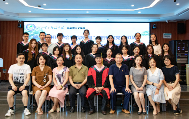 本网讯(通讯员 粟永硕)6月17日下午,我院于1号楼6楼数字马院开展“铭记百年初心 绘马院宏图”庆祝建党100周年暨“以梦为马 共赴韶华”2021届毕业生典礼,机关党委书记兼组织部副部长库文静、我院领导班子、全体教师以及2021届毕业生参与活动,2018级思想政治教育1班王梦姣主持活动。