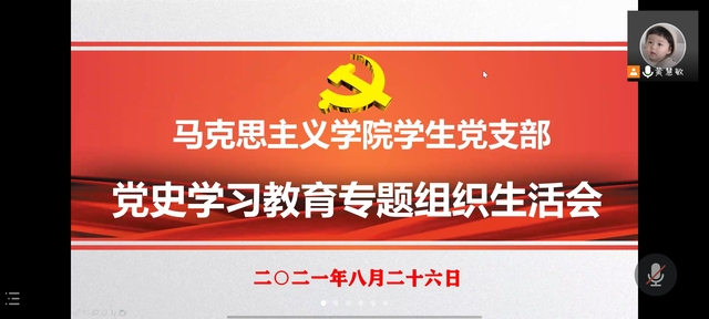 本网讯(通讯员 周媛)8月26日晚,我院学生党支部召开党史学习专题组织生活会。我院学生党支部全员到会,我院学生党支部纪委兼组织委员宋平、书记樊勇、组织委员王一以及学生党支部全体党员学生参与会议。会议以线上腾讯会议的方式展开。
