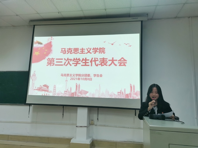 2020级思想政治教育2班李翔宣读《学生会章程(节选)》,并由现场全体同学进行审议,全体学生投票通过了《湖北第二师范学院马克思主义学院学生会章程》2021年修订版。根据投票结果,王洁、赵丽娇、雷敬谊当选我院第九届分团委学生会主席团成员;粟永硕、赵星雨代表学院出席我校第四次学生代表大会。