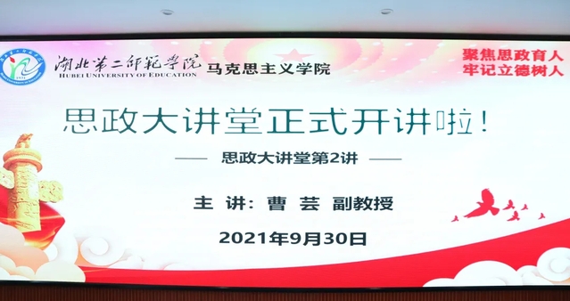 9月30日下午,湖北第二师范学院马克思主义学院于一号楼6楼数字马院召开思政大讲堂第二课,马克思主义学院副教授曹芸担任主讲人,2021级思想政治教育专业全体学生参与讲座。