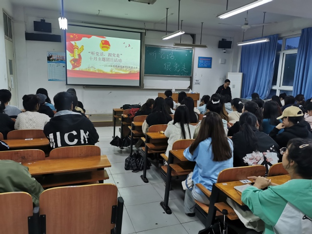 本网讯(通讯员 周媛)10月17日晚,我院各团支部于二号楼二楼开展“听党话,跟党走”十月主题团日活动。我院思想政治教育专业全体学生参与。