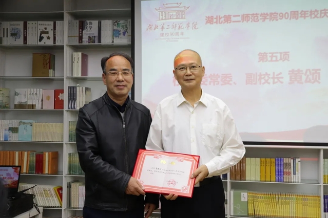 捐赠仪式伊始,黄红发向在场的师生介绍本次莅临现场的领导以及我院校友原湖北省教育学院思想政治教育专业96级1班张竹林、肖金刚。