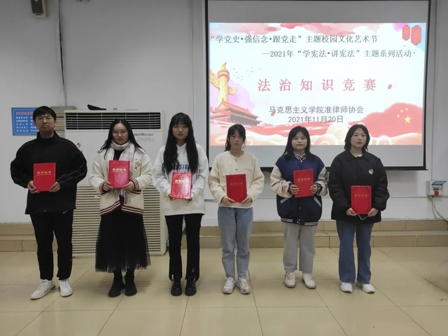 11月20日下午,湖北第二师范学院马克思主义学院(后简称马院)准律师协会于旧图书馆4号报告厅举行“学宪法·讲宪法”法治知识竞赛活动,共有8支来自不同学院的队伍参加比赛,2020级思想政治教育1班单馨怡主持活动。