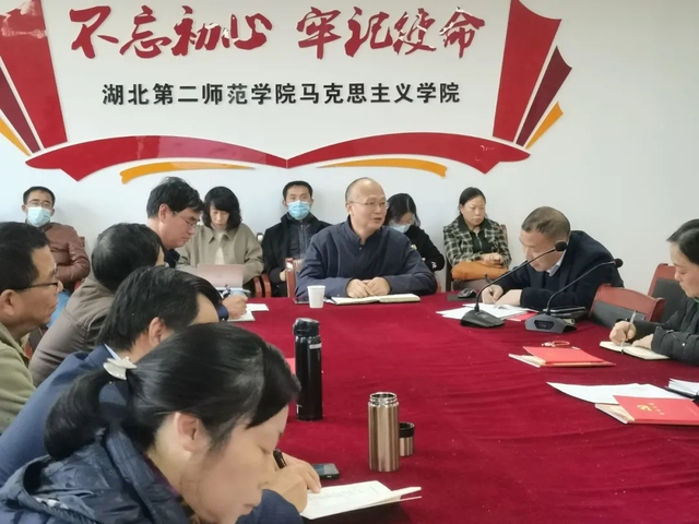 11月25日14:00,为深入贯彻落实中央有关精神,根据中共湖北省委组织部和省委教育工委要求,结合湖北第二师范学院有关工作安排和湖北第二师范学院马克思主义学院(以下简称马院)实际,经研究决定马院开展迎接巡视专题支部主题党日暨二级中心组政治理论学习活动,湖北第二师范学院副校长黄颂作为马院党总支成员与马院全体教职员工一起参加了本次会议。↑↑点击图片进入最新推送↑↑