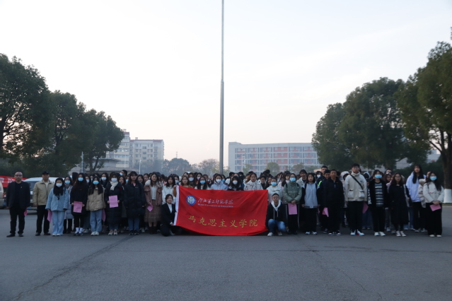 本网讯(通讯员 罗心雨)12月3日上午,我院于南大门国旗台前举行“学宪法·讲宪法”升旗仪式,我院党总支副书记宋平,分团委书记樊勇,以及2019级、2020级、2021级思想政治教育专业全体学生参加,2020级思想政治教育1班于欣萌担任主持人。