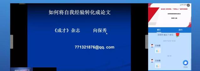 12月18日下午,武汉《成才》杂志主编向保秀作《如何把自我经验转化成论文》专题讲座,湖北省“双带头人”培养专项研修班全体学员参加。