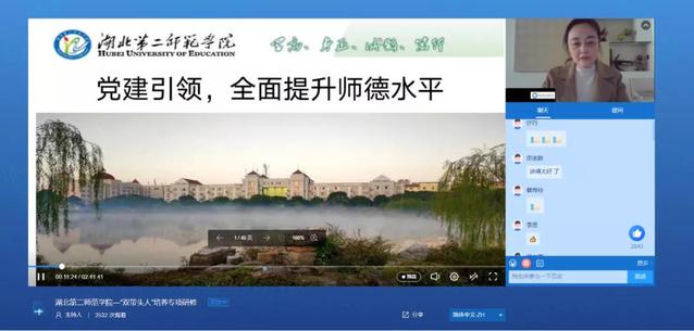 12月14日下午,湖北省2021年“中小学幼儿园教师素质提升工程”——“双带头人”研修培训项目于线上继续开展。湖北第二师范学院马克思主义学院副院长张玲做主题为《党建引领,全面提升师德水平》的专题讲座,培训班全体学员听取讲座。