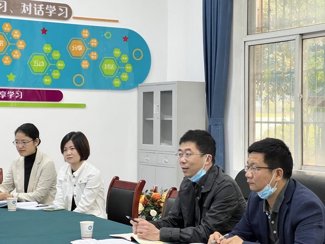 在调研座谈会上,黄红发首先简要介绍了我校马院思想政治教育省一流专业、黄大式国家级教师团队、思想政治教育社会实践国家一流课程建设情况。接着,他围绕光谷教师教育综合改革省级实验区“五个一体化+人工智能”教研平台,重点介绍了“推进光谷大中小学思政课一体化建设”的方案。他表示,思政课是立德树人的关键课程,推进大中小学思政课一体化建设,是落实习近平总书记“3.18”讲话精神的一项重要举措,要把这项工作落地生根,做出实效,打造亮点,形成光谷区五十所大中小学思政课教育教学可推广可复制的经验和模式,为积极申报国家级教师教育综合改革试验区创造条件。