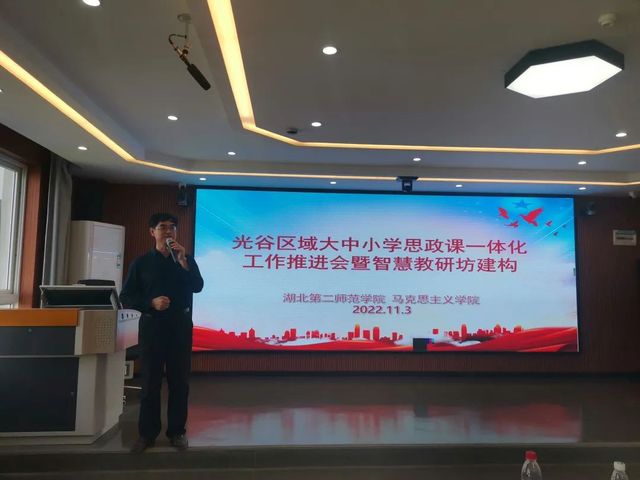 2022年11月3日上午,湖北第二师范学院马克思主义学院组织全体教职工在1号教学楼数字马院召开了光谷区域大中小学思政课一体化建设推进会议。会议由马克思主义学院院长、光谷区域大中小学思政课一体化教学与实践研究中心负责人黄红发主持。